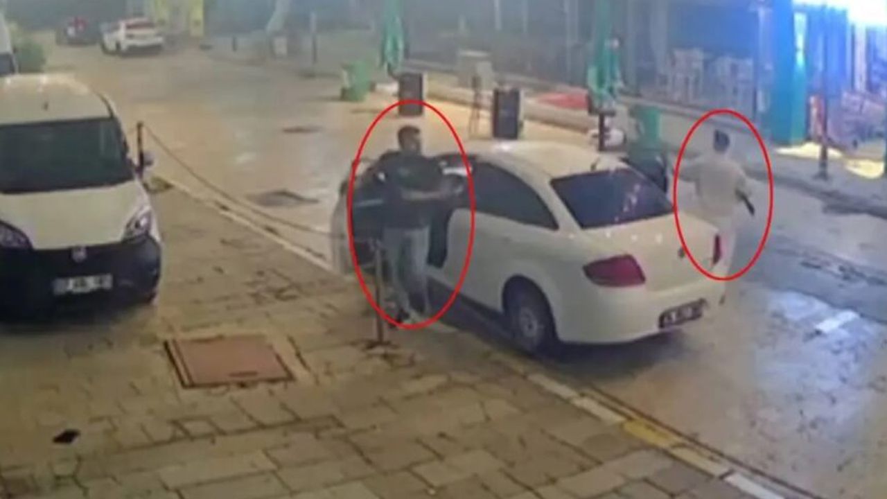 Görüntülerde otomobille iş yerine gelen, birinin elinde av tüfeği bulunan 2 kişinin olay yerine doğru yürüdüğü, kısa süre sonra da koşarak uzaklaştığı, bu sırada peşlerinden 1 kişinin tabancayla ateş ettiği anlar yer aldı.