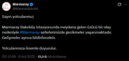 Marmaray'ın X hesabından yapılan açıklamada şu ifadelere yer verildi: