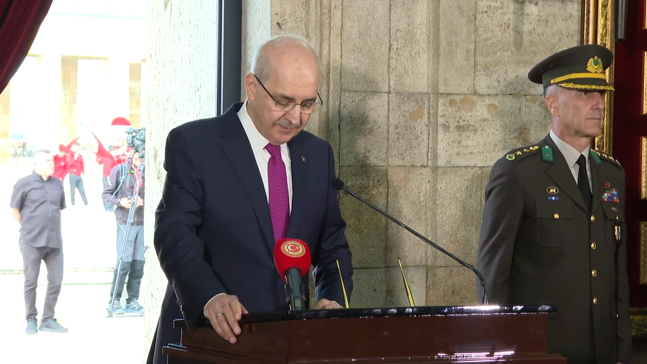 Atatürk'ün mozolesine çelenk bırakılmasının ardından Kurtulmuş Anıtkabir özel defterini imzalamadan önce bir konuşma yaptı.