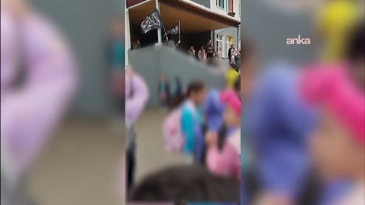 İstanbul'un Esenyurt İlçesi'nde bulunan bir okulda düzenlenen Filistin etkinliğinde bir öğrenci tarafından iki elinde de bulunan Kelime-i Tevhid bayrağı açıldı.