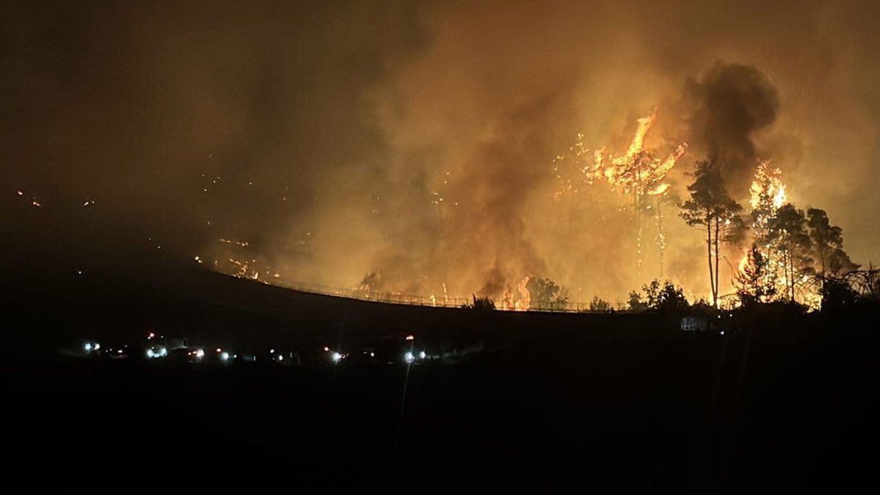 "18 araçla müdahaleye başladık. 2 helikopterimiz şu an havadan müdahale ediyor. 1 helikopterimiz de yolda. 18 aracımızın 5'i arazöz, 2'si itfaiye aracı, 2'si su tankeri. Ovabaşı Mahallesi'ni tedbir amaçlı boşaltma kararı verdik. Bununla alakalı da arkadaşlarımız çalışmalarına devam ediyor."